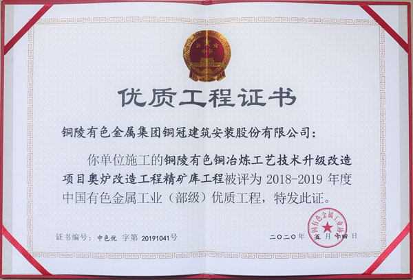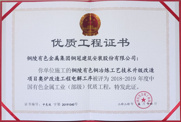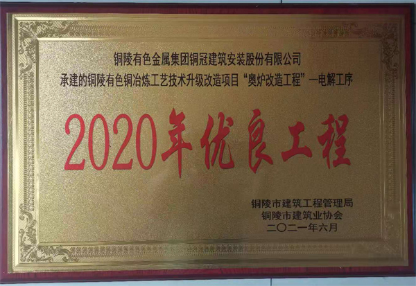 • 铜陵市2020年优良工程(铜陵有色铜冶炼...
