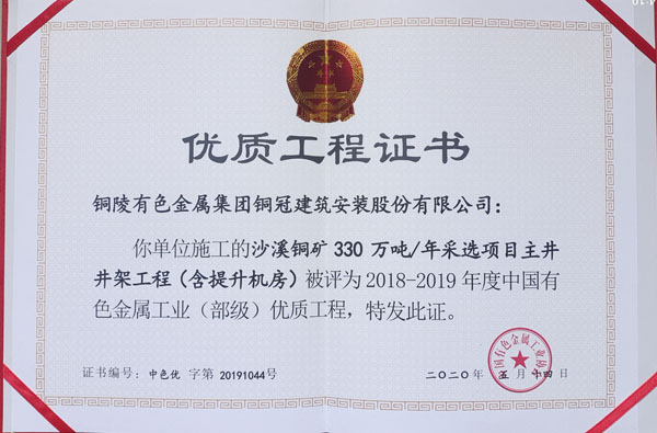 • 沙溪铜矿挑撰项目主井井架工程(部优)